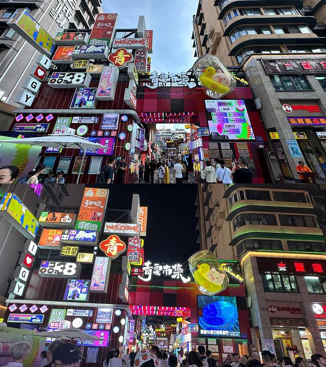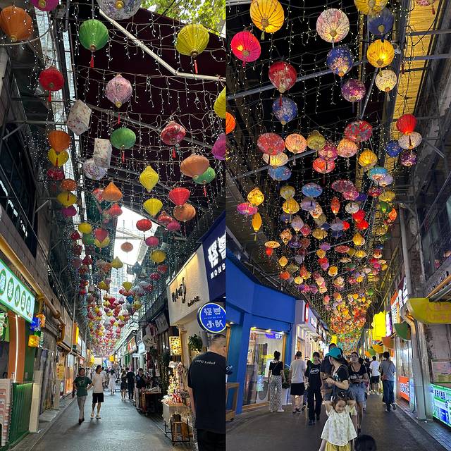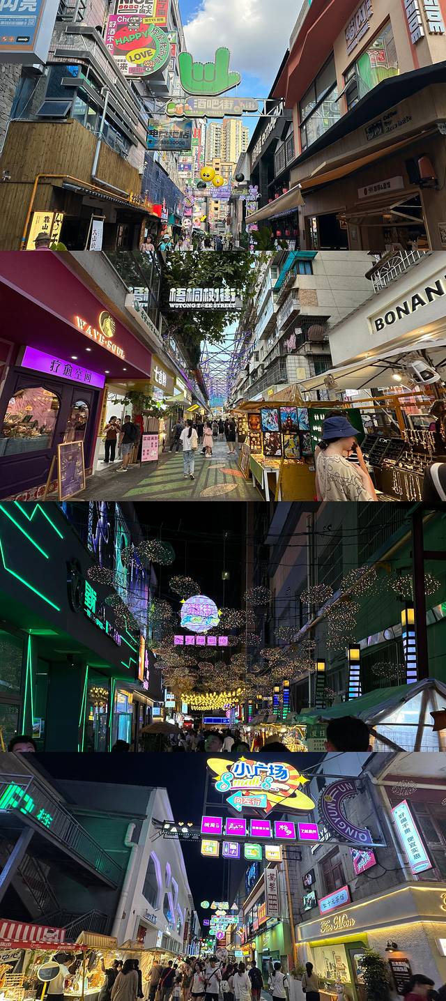 四条街在一起,梧桐街,猫街,小广场,酒吧街,都在青云市集里,我们逛逛拍拍好几个小时,哈哈,太好逛了,女生最爱,爱拍照的建议天黑早一点去,晚上亮灯后很多人