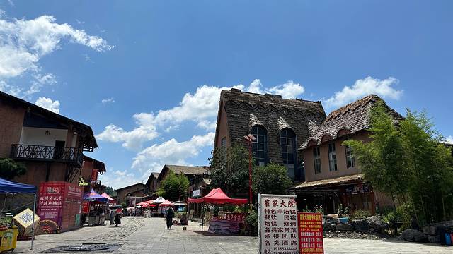 小镇的建筑以传统的彝族木楞房、石木结构的房屋和土掌房为主,这些建筑在材料上多选用当地的木材和石头,具有独特的质朴感和地方特色。同时,小镇还融合了现代建筑元素,形成了现代彝族建筑风格,注重实用性和现代感,同时也保留了传统彝族建筑的精髓。
