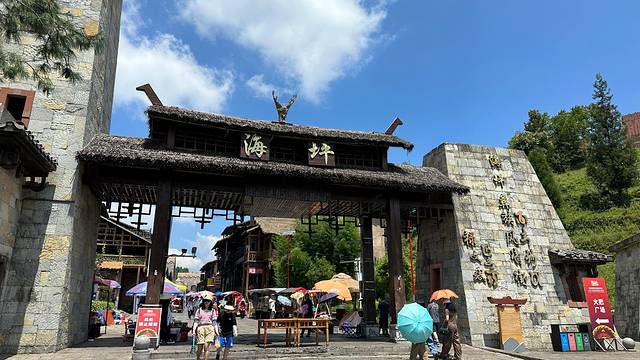 海坪彝族风情小镇位于贵州省六盘水市水城县玉舍镇海坪村,是六盘水市野玉海山地旅游度假区的核心区。 这个小镇由彝族文化广场、彝族风情街、土司庄园、太阳历广场、九重宫殿、千户彝寨、彝族始祖希慕遮雕塑等部分组成,是一个集文化体验、观光生活、演出娱乐为一体的度假休闲圣地。海坪彝族风情小镇不仅拥有优美的自然风光,还融合了传统的彝族文化和现代建筑元素,展现了独特的彝族建筑风格和文化内涵。