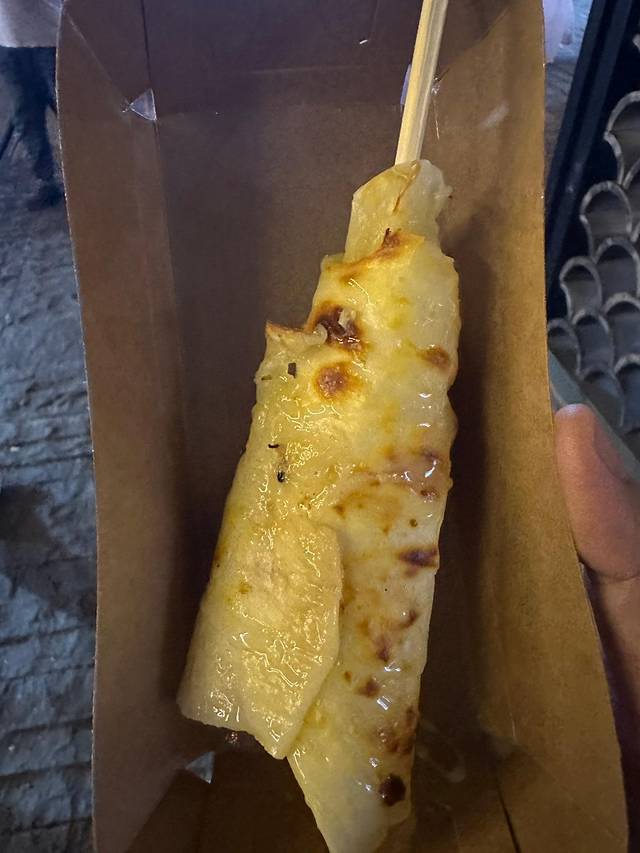 e:均匀地撒上自己喜欢的馅料,再包好,一个锅巴糍粑就完成了!