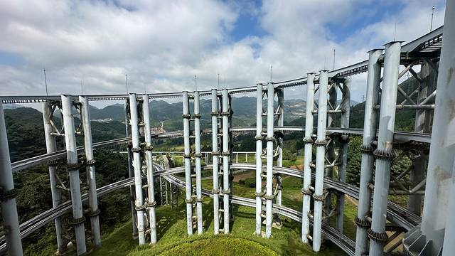 小火车开的很慢,盘山轨道
