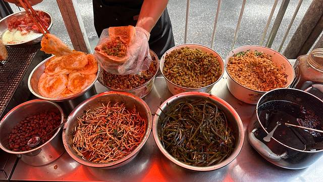 主要成分:裹卷的主要成分包括米皮、各种蔬菜和辣椒底料。米皮是用米粉精制而成,薄得近乎透明;蔬菜通常包括折耳根、豆芽、红萝卜丝、酸萝卜、香菜等,这些蔬菜在制作过程中会进行抄水处理,然后切碎混合。