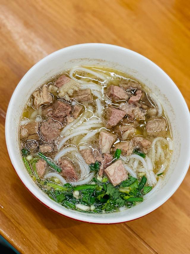 由多种名贵中草药精心严格制作,做出的牛肉粉与众不同,汤鲜味美,肉香。吃过的人赞不绝口。