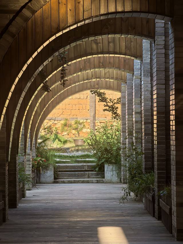 路过一个店铺,夕阳西下,院子里呈现出一种静谧而幽深的风景,这可能是本次最美的一张照片。