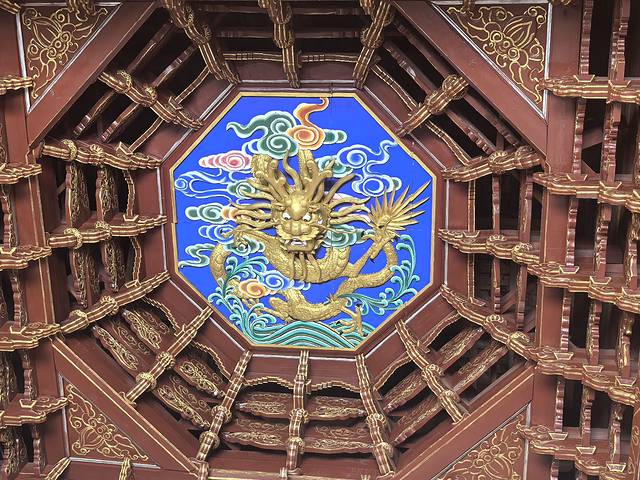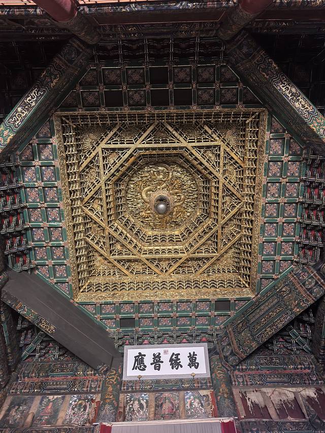 屋顶藻井,金碧辉煌,彰显佛祖威严。