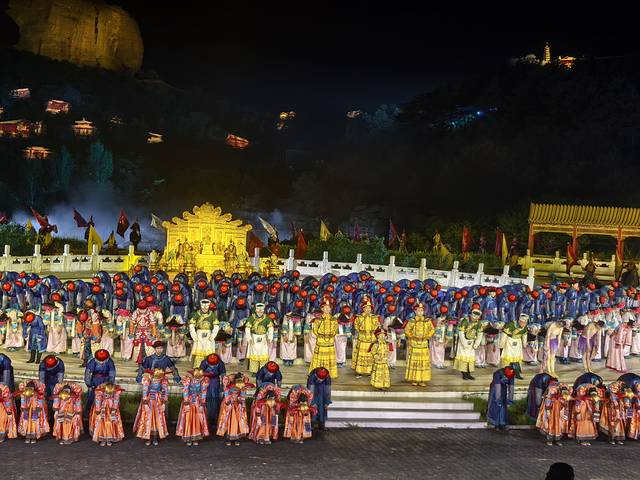 跟“印象”系列一样,采用的是实景演出,一个山谷,刚好搭建形成一个演出场地。灯光、升降旋转的舞台、山上伸缩的佛像、奔腾的战马、小桥流水、江南采莲、平灭叛乱、收复台湾、册封班禅…还是值得一看,就是晚上有点冷,冻的不行。