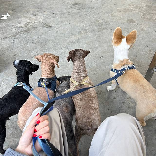 早起来遛狗啦
