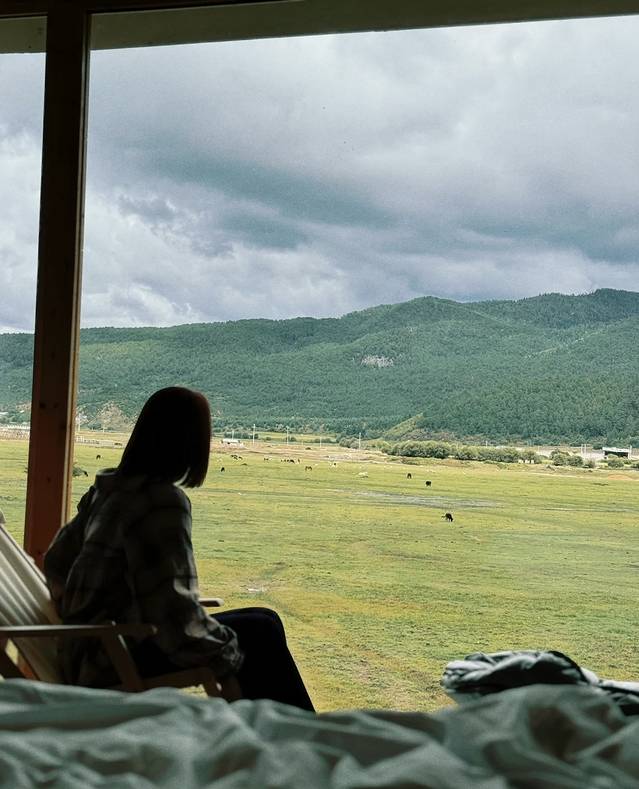D2:拉市海。没有常规的进入景区,也是看别人的攻略,导航到拉市海吉祥休闲鱼庄附近停车,这里随处可见的牛羊马群,能近距离的走近,当然还是得注意安全,因为这里属湿地,到处都是湿泥,栈道口会有卖鞋套,10元/对,穿了这不怕踩湿鞋子啦。入住清溪街里的民宿,这边很多民宿,开窗能看到玉龙雪山那款,推荐只是可惜这2天都下雨