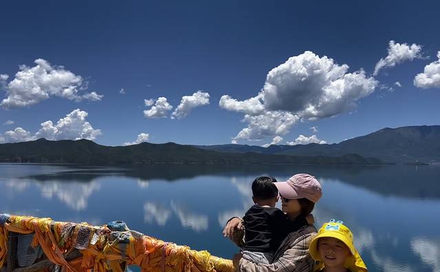 D5:泸沽湖游船。不得不说,只要是天晴的云南,就能晒干你,这个月是泸沽湖上水性杨花盛开的季节,在湖上游着,看着满湖的花,湖里清澈冰凉的水,太舒服了。晚上云雾散去,看满天繁星。