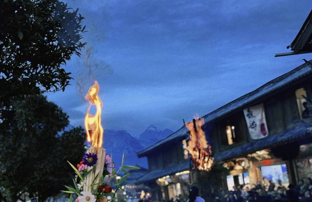 晚上我们逛了束河古镇,恰巧遇到火把节,真的太惊喜了