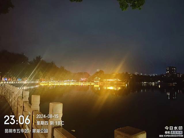 从广州下午飞机抵达昆明长水机场,第一天因为飞机晚点了,晚上11点才到昆明。我的所有行程都没有赶早,都是下午或者晚上换地点,不太喜欢早起。但是再疲惫,我还是要去我最爱的翠湖走走,当天晚上抵达酒店以后就去转转了。入住翠湖的全季酒店,但是好像8月的昆明只有18°,超级多人,也是孩子暑假和夏天避暑的好地方,1个月前在翠湖边还就只有我一个人在这转悠和焦虑。哈哈