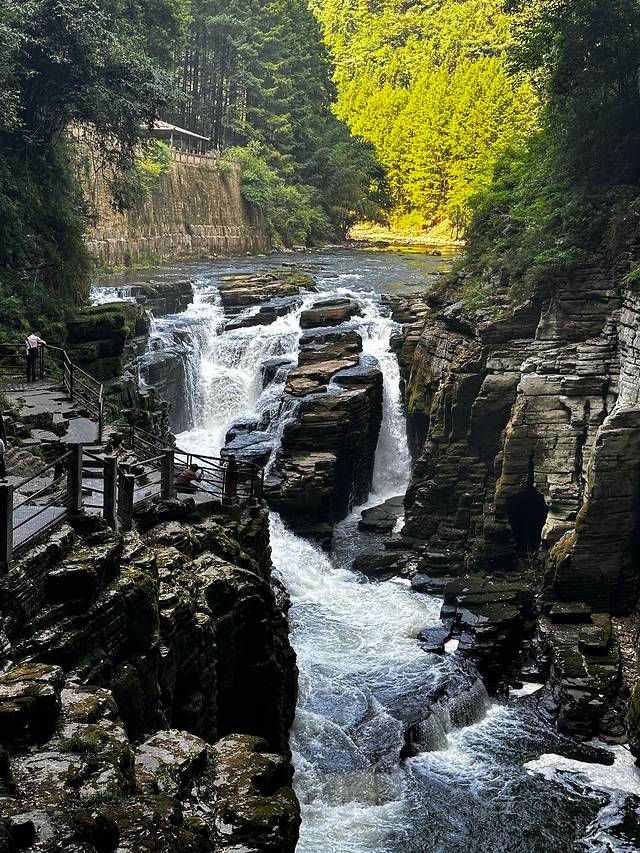 1-步行至恩施大峡谷游客中心 游玩路线:坐大巴到七星寨徒步入口——爬到上行缆车终点——石岩迷宫—— 一线天——绝壁栈道——中楼门返回——云龙地缝入口——两瀑布——桥— —原路返回