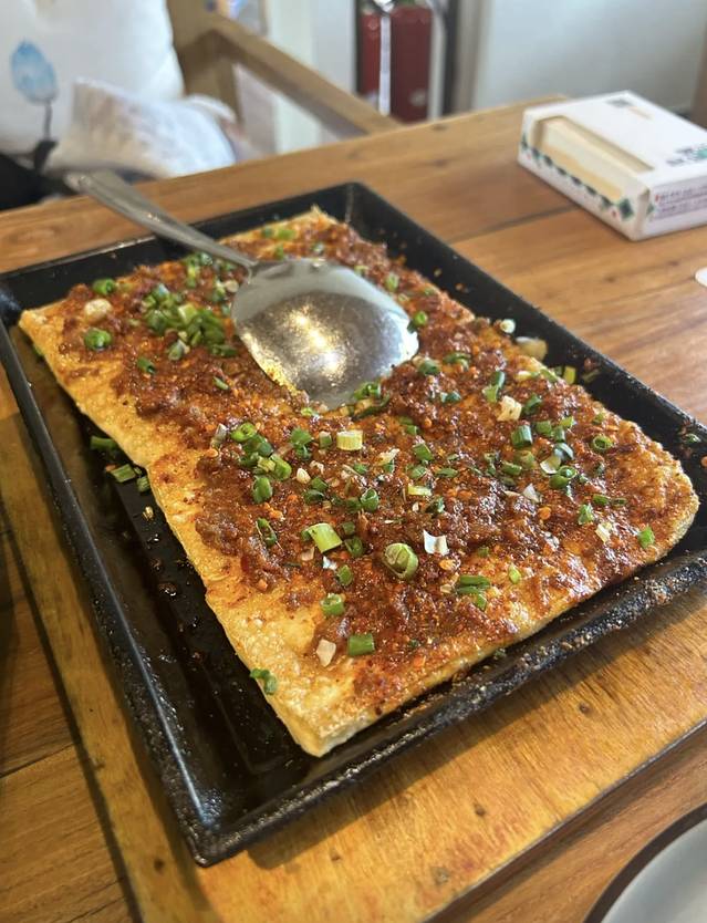 铁板香煎豆腐豆腐外焦里嫩铁板小黄牛小黄牛炒的很嫩诶