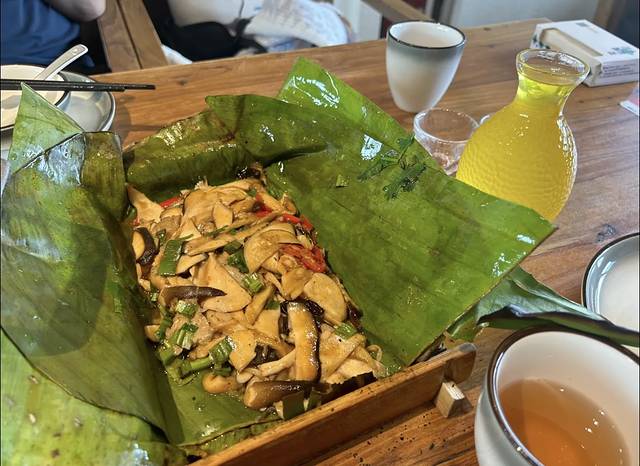 傣味包烧菌菇很独特的味道,汁水很多,很好吃
