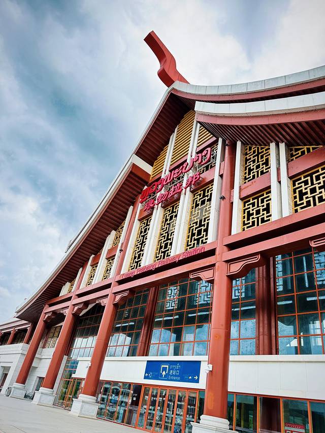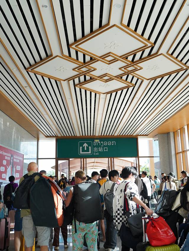 因为琅勃拉邦是联合国科教文组织挂牌的文化遗产小镇,城里所有的建筑都不可以超过两层,新建的琅勃拉邦高铁站可以说上是琅勃拉邦建筑的天花板了,宏伟壮观。高铁站的设置和国内一样,中英老三文提示语及播报让中国旅客倍感亲切丝滑。