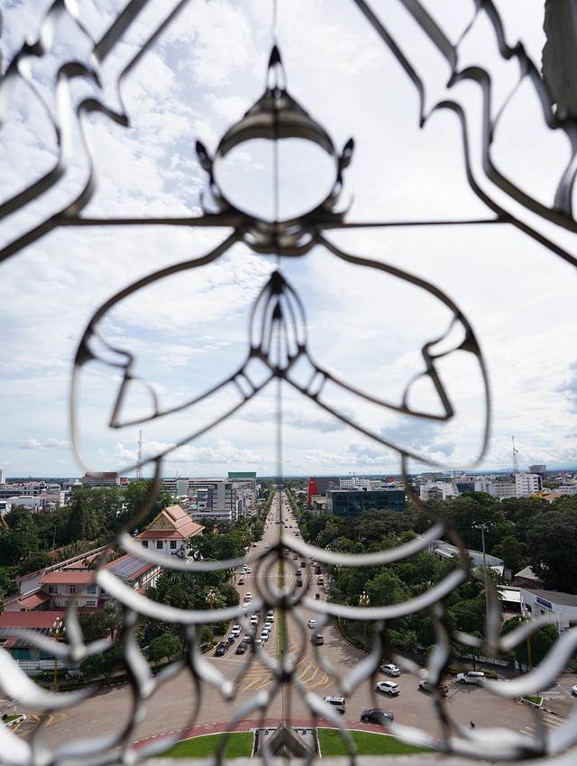 ———到了万象已是傍晚,我们住在了与泰国一河之隔的湄公河岸边,隔河共赏落日晚霞,想起了情意很深的一个词:一衣带水。第三天的万象行程,我们登上了地标凯旋门,看到了完美的高空中轴线,是我最喜欢的万象时刻,欢迎继续关注哦~