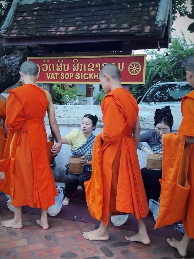 5、布施的时候都要比僧侣矮,坐着或者半跪着,女生尤其不能站着,不要有肢体碰触。