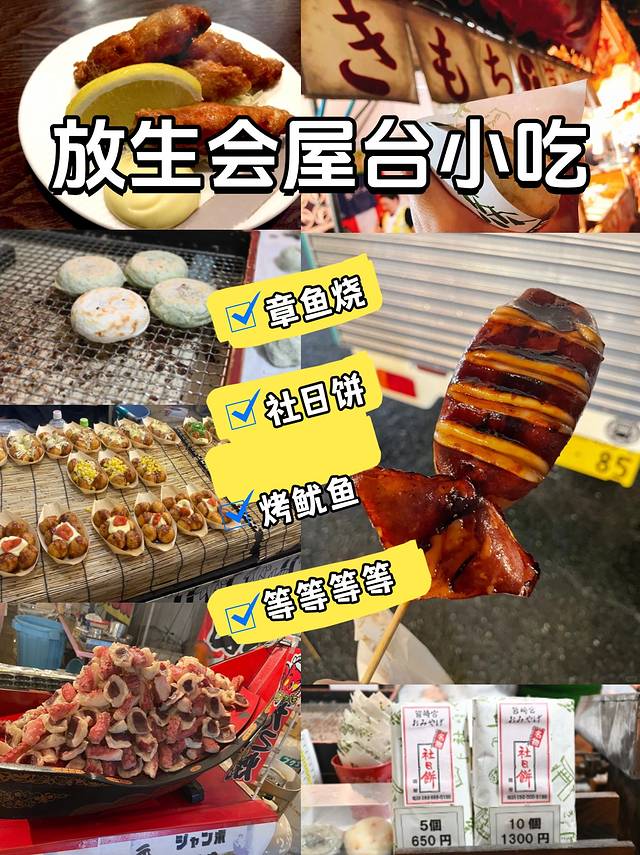 放生会期间会有500家店铺来这里营业,全国各类小吃云集,一路走来真的会吃到撑,但是我最推荐的是【社日饼】,就好像去太宰府要吃【梅枝饼】一样,【社日饼】就是放生会来过的证明哦~(偷笑)
