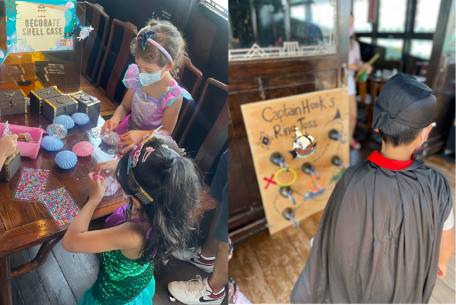 在这里,孩子们将与海盗女王和美人鱼一同开启一段奇幻旅程,学习航海知识,参与金币寻宝游戏,挑战铁钩船长抛环、海盗飞镖、掌舵和走平衡木板等趣味项目。他们可以亲手装饰宝箱和美人鱼贝壳,与张保仔号一同打卡拍照,留下难忘的童年回忆。
