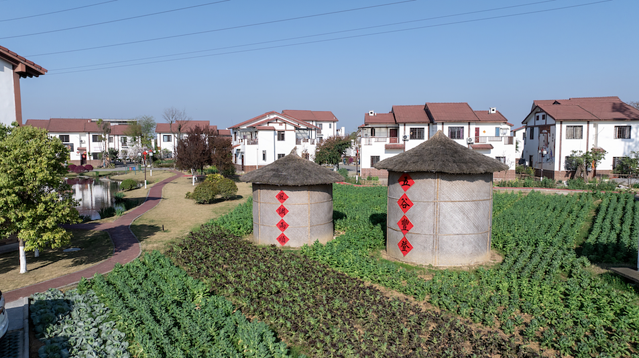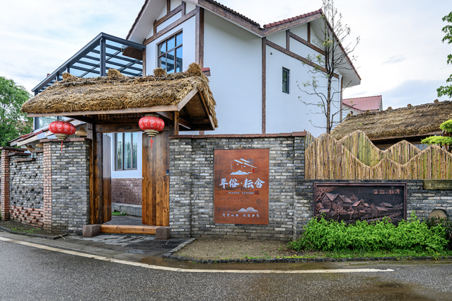一家是以农耕文化为主题的民宿,在大门上就巧妙的运用了麦穗秆作为装饰物,让路过的人一看就知道它家的风格。