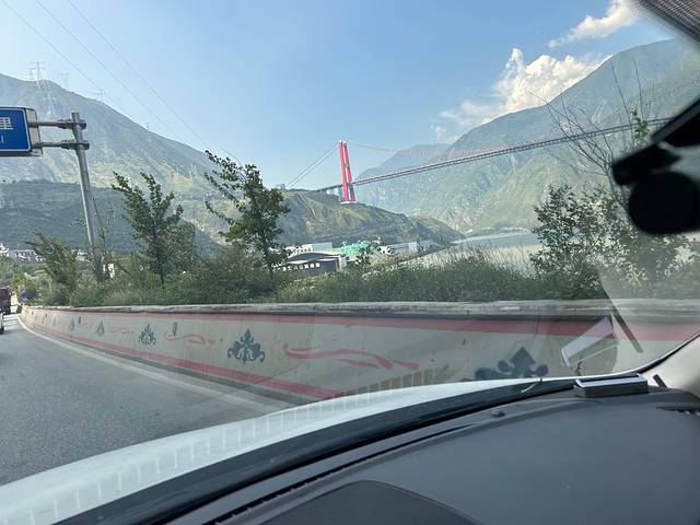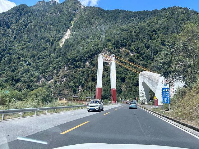出了泸定,往康定便开始一路爬坡。途径新泸定大桥,矗立于碧水青山之上的一抹红,俨然成为了一道风景。