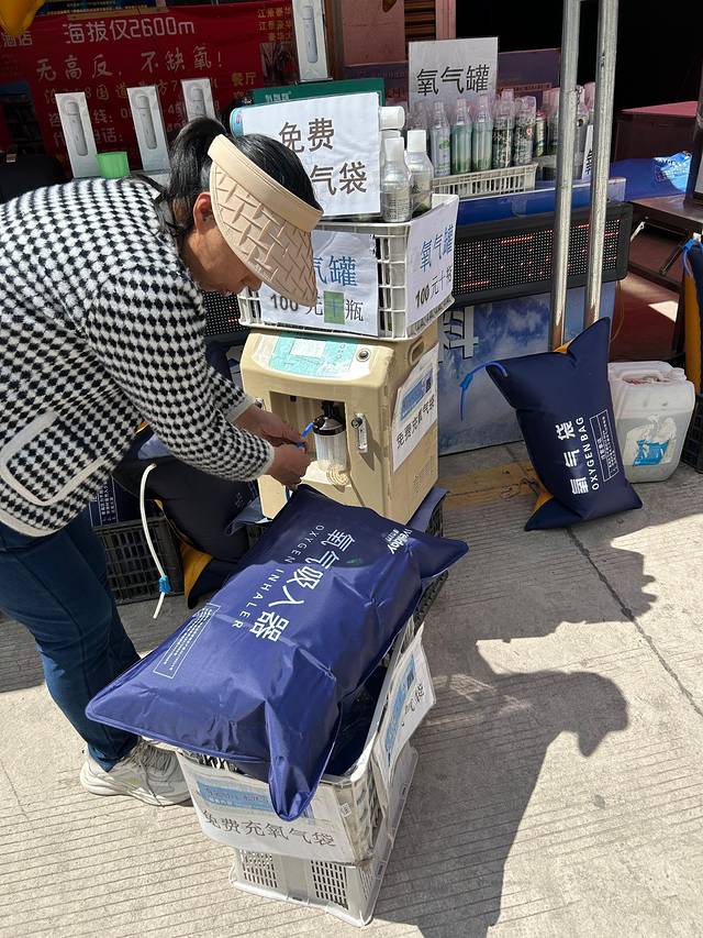 另外氧气袋沿路的卫生院和医院一般都可以充氧气,但是医院流程复杂,能卫生院尽量卫生院,省时省力,42L 氧气袋充满一般需要20或25元。另氧气袋有个不好的地方是,密封性问题,就算不吸氧,一天下来,氧气也会泄露。