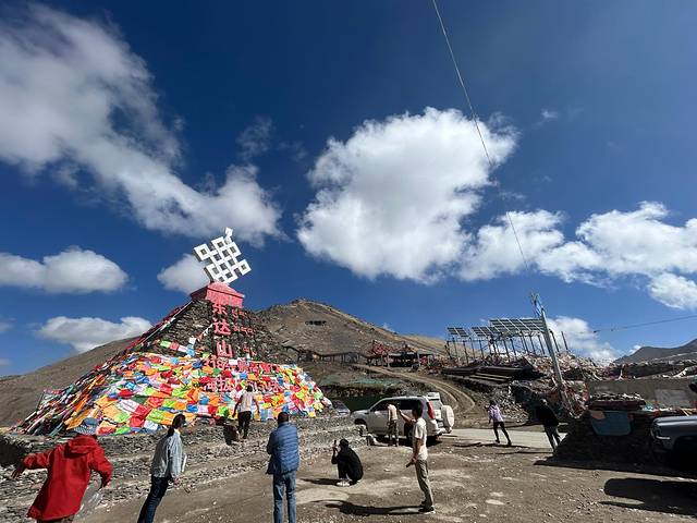 山顶紫外线很强,风也很强,由于是入藏第一座高山,因此,驻车观光的游客很多,也是容易堵车的第一站。