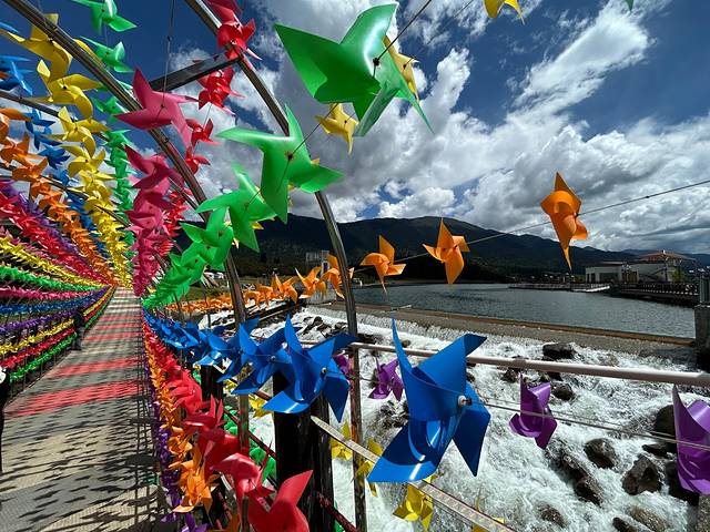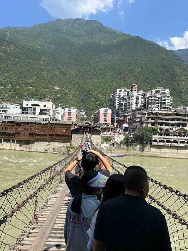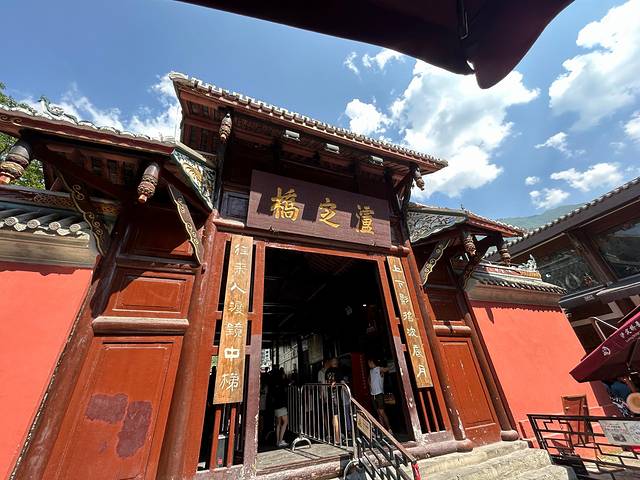 泸定桥晃的很,脚下大渡河也是湍急,桥上需注意保管随身物品。只是心生感慨,想当年红军战士是一人携带一块木板铺上攻入对面桥头堡的,而今天的我们走在上面都觉得晃的厉害,可见当年红军战士的不易。
