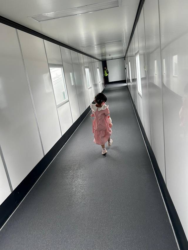 第一次坐飞机的小姑娘开心的蹦蹦跳跳。