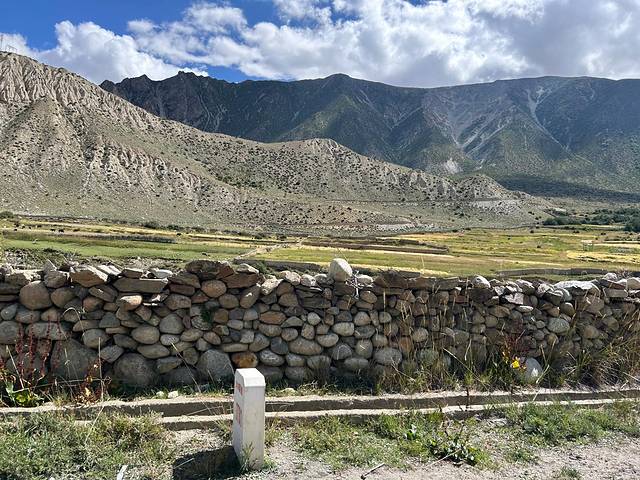 石头墙外种的应该是青稞,这个季节,青稞熟了,藏民开始收割了。