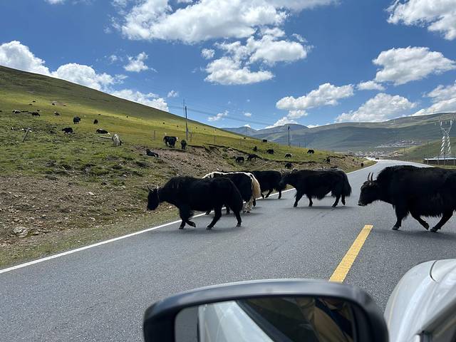 今天基本在高原行驶,行驶高度在4000m 以上,这里青草葱郁,牦牛成群,举手仿佛能摘到云朵,因此理塘有被誉为天空之城的美称,也被称为世界第一高城。