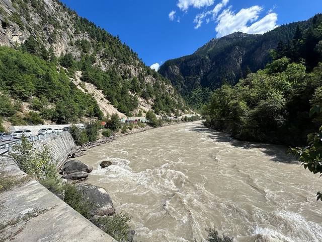 相较于川西的山峰,西藏的山多了些荒凉,少了些植被覆盖,也明显陡峭了不少,而且入藏开始,地面炮弹坑明显增多,从中也能够感受到西藏跟四川的财政区别。