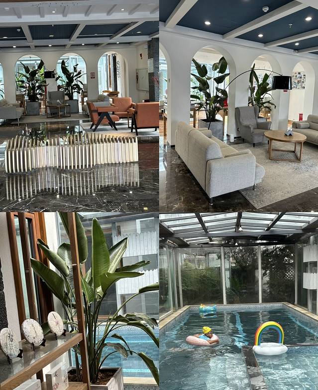 酒店泳池是恒温的 贴心+++还可以打乒乓球,小朋友的游乐区