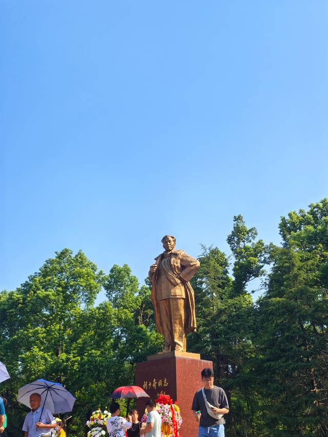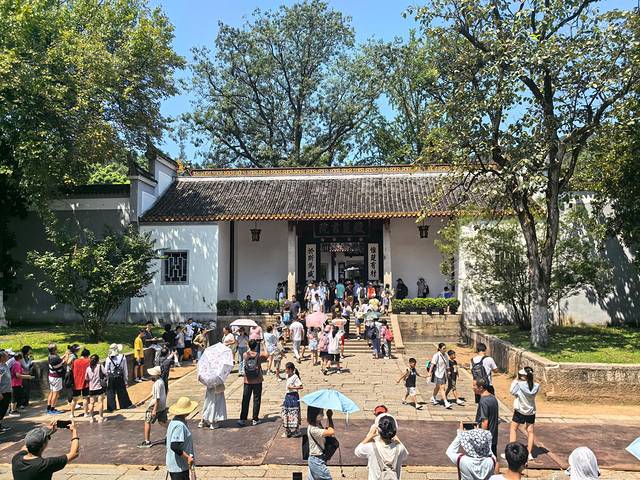【刘少奇故居】是一栋坐东望西、土木结构的内套四合院式房子,在花明楼炭子冲,刘少奇在此度过了童年和少年时代。故居在一座盖有茅草的栅栏门内的四合院中,是省级重点文物保护单位。太阳很大,还偶遇当地学校红色研学,确实思想教育要从小抓起。