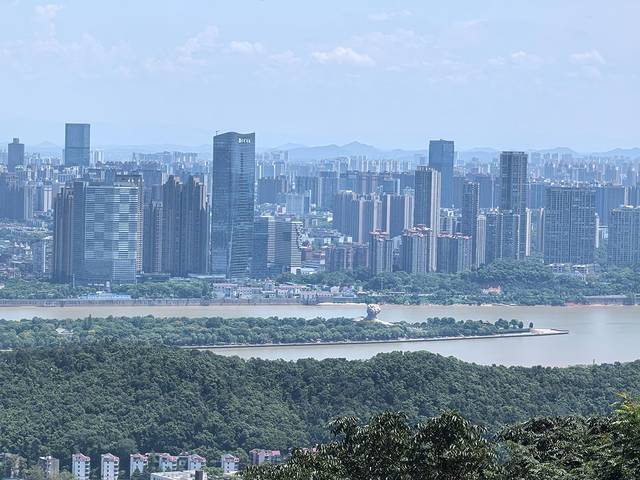 天气比较热,人也比较多,偷懒了下,在岳麓书院出来买了观光车票,还是坐车实在点吧,不然估计得中暑了,这的天气还真跟我们沿海不一样,高温就算了一点风都没有,就是热热热~~~汗滴都是豆大的。来到山顶,看到来时湘江对岸的高楼、橘子洲,虽然离预期还是有些差距的,但还是很壮观。