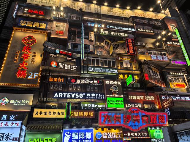 ✅坡子街,千年老街,各种小吃。五一商圈、解放西路酒吧街、黄兴南路步行街联成片。