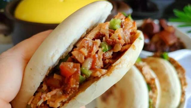 肉夹馍:选用腊汁肉,剁碎夹于馍中,馍酥肉香,回味无穷。推荐店铺有子午路张记肉夹馍、秦豫肉夹馍等。