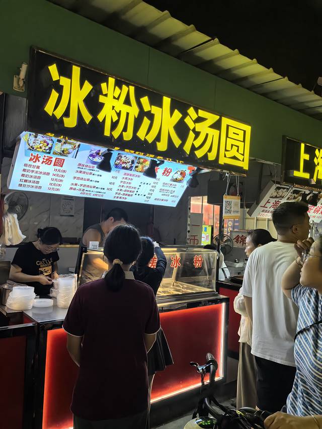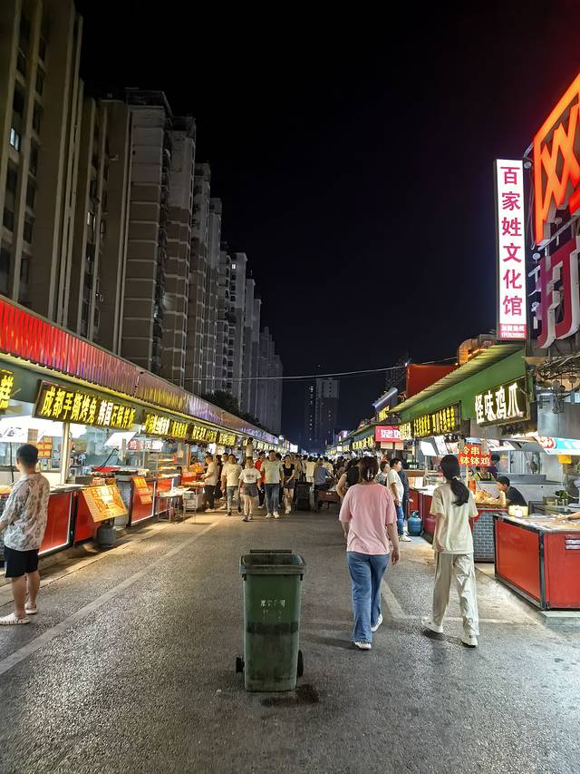 和李村夜市相比呢,更有当地特色,更像是大学生们解决晚餐的地方,所以物美价廉,量大实惠,真的没有火爆大鱿鱼。吃完晚饭,想找个接地气溜达消化食儿的地方,这里挺合适。门口右手边有收费停车场,5元。买点气球、声光玩具、绿豆粥、奶茶、鲜榨果汁、烤肠、面、汤包、啤酒烤鸭、叉骨、玉米饼、甜酒酿,老多了。还有水果摊,买点儿回酒店吃。