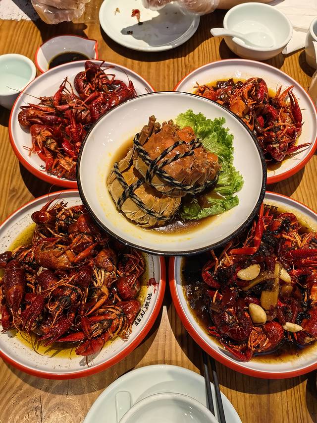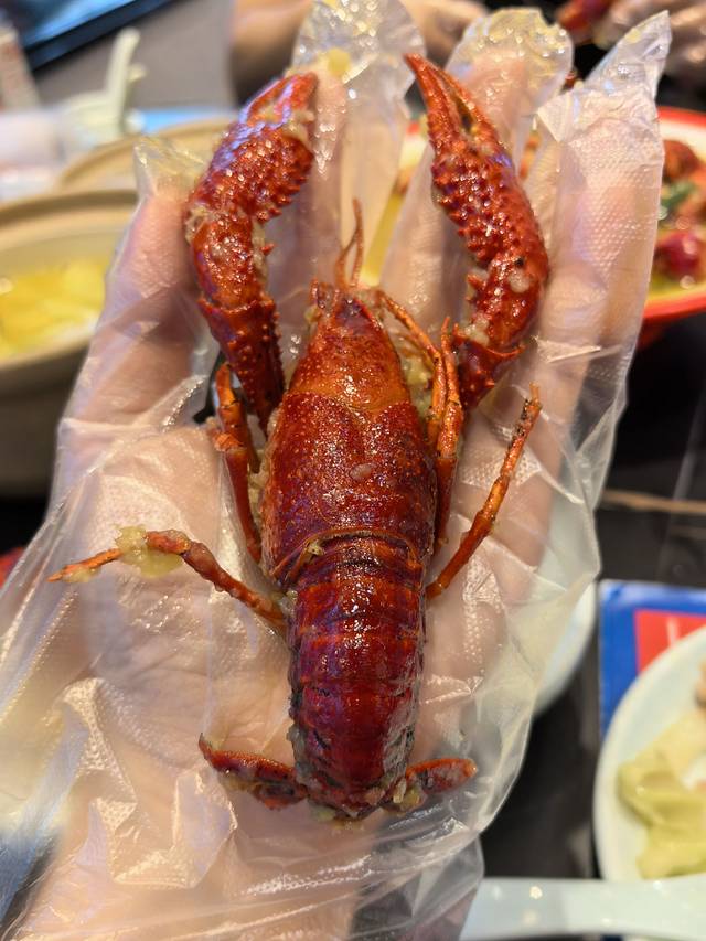 手掌这么大个的小龙虾叫炮头虾,团购里的是567钱的个头,不是一种,但不管是大还是小,味道真的是绝绝子。大闸蟹也便宜好吃,16一只,真不贵。