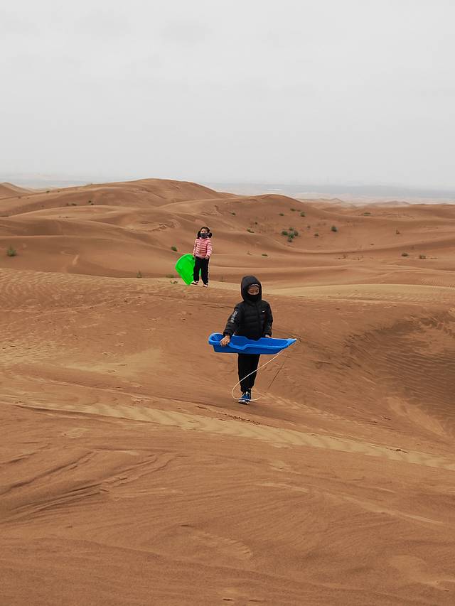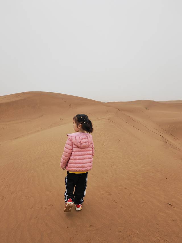 小孩哪里知道哪有最高的沙包,一丘还比一丘高,冲了这个包又眼热那个包,连冲带喊,不知疲倦,只可怜后面跟着的老娘连呼带喘,沙漠爬坡实在是太累了呀~