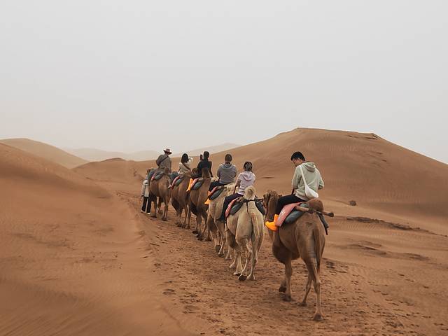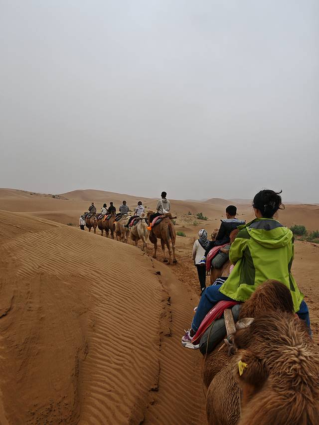 小雨淅淅沥沥,大约一整夜吧。骑在高大的骆驼上,漫步于迷雾还未散尽的茫茫大漠,周围安静的没有一丝声响,只有骆驼蹄子踏过的声音和偶尔叮当叮当的驼铃声,心好像在此刻也安静了~