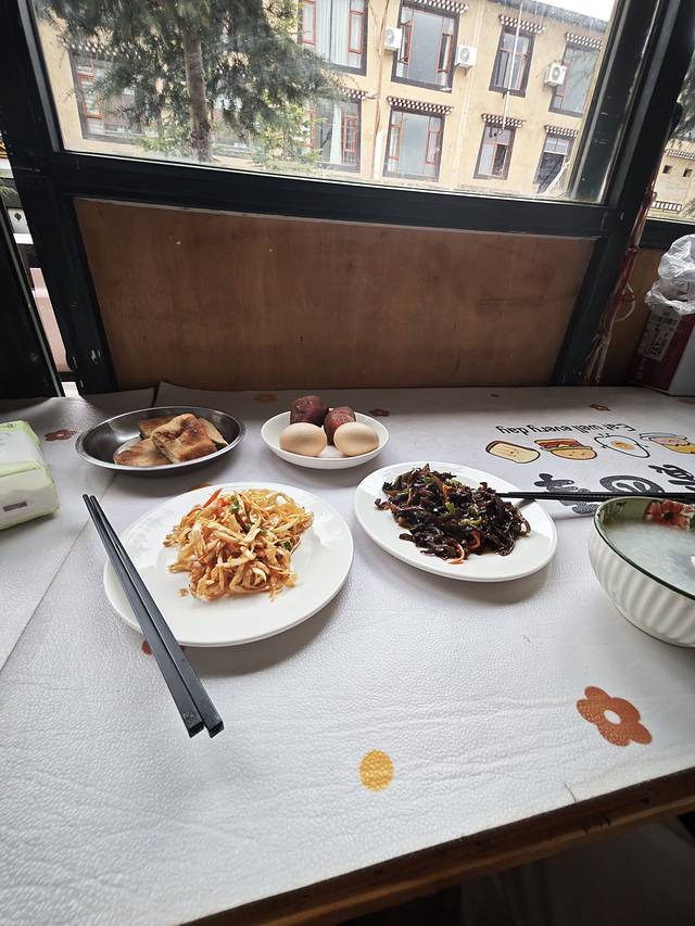 酒店早饭,老板自己做的,还挺丰盛,至少不是只有咸菜了