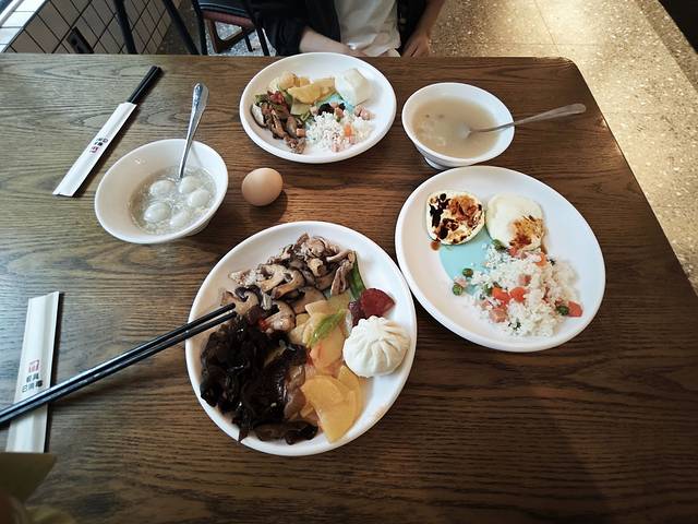 酒店早饭,有味的只有小咸菜,还是吃两个鸡蛋顶饱