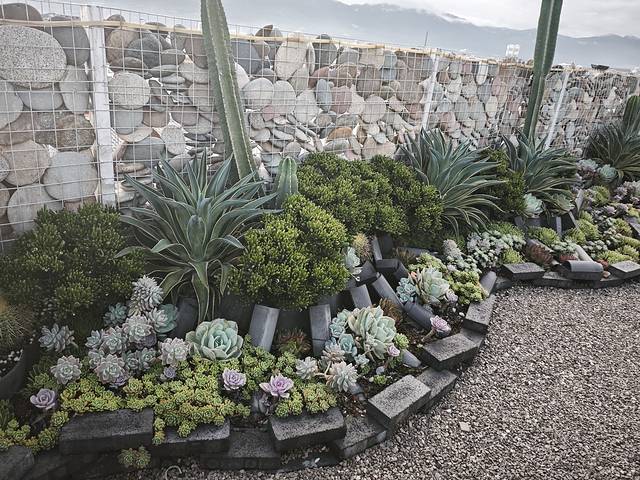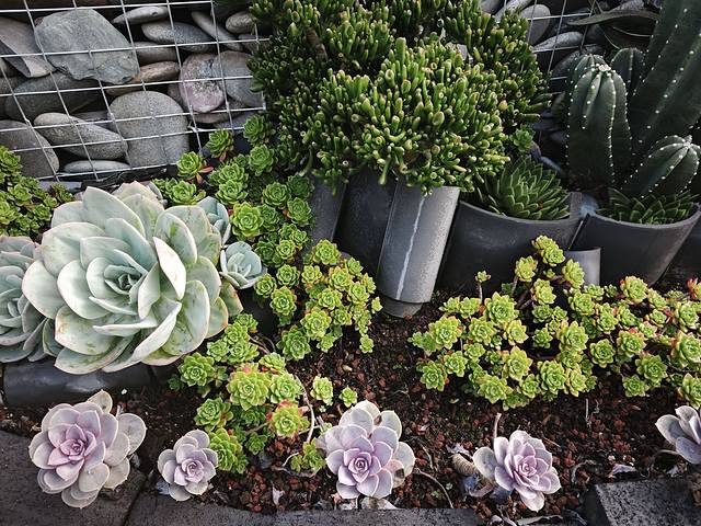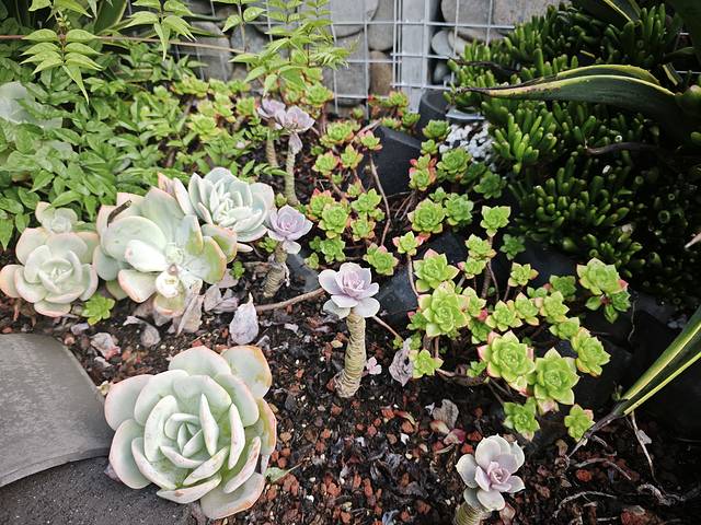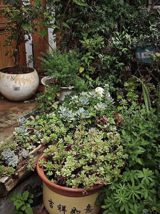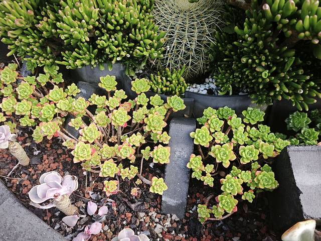 楼顶露天阳台,一排多肉
