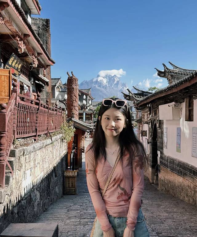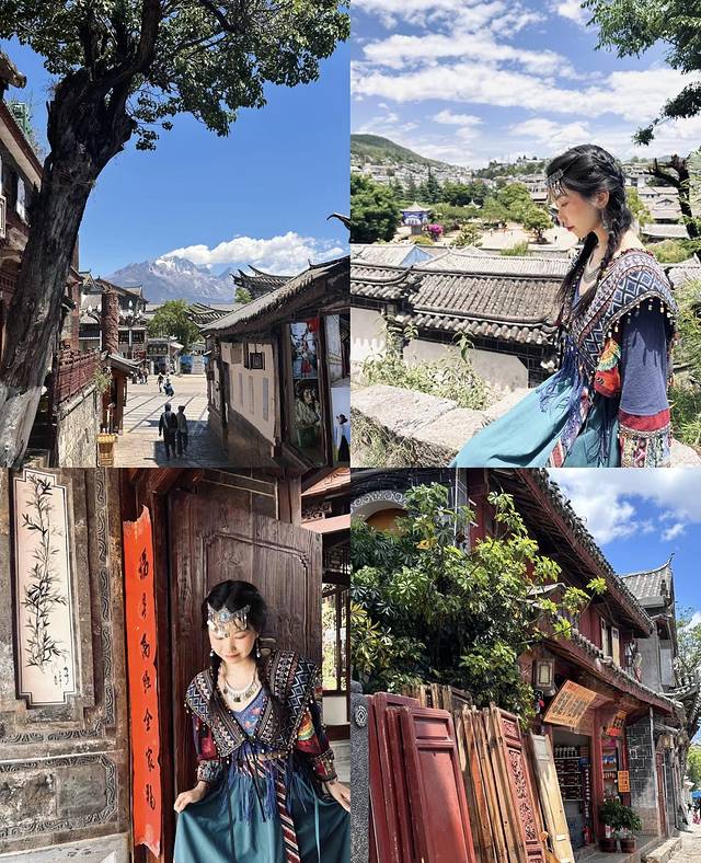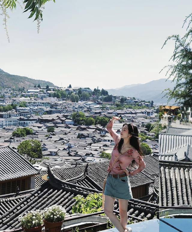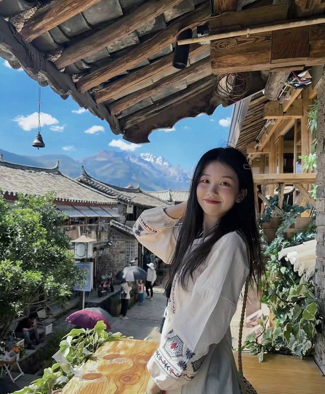 白沙古镇,镇子就能看到玉龙雪山,打卡了雪山和屋顶