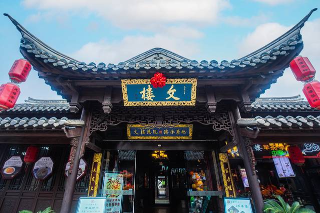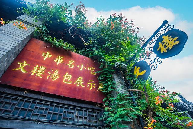 老街上的百年老字号“文楼”是当地淮扬菜的标杆,极具代表性,尤其他家的蟹黄汤包,被誉为“天下第一鲜”,院子里乾隆与纪晓岚的百年“绝对”更是让后人难忘。