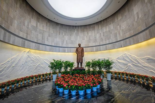 沿着青石铺就的道路前行,便是纪念馆的主馆。主馆呈四方形,造型简洁而庄重。踏入馆内,一幅幅珍贵的历史照片、一件件饱含故事的文物,以及一段段生动详实的文字介绍,将波澜壮阔的一生徐徐展现在眼前。