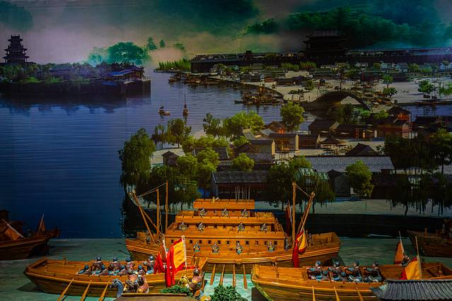 场景复原区更是让人仿佛身临其境。热闹的漕运码头,工人们忙碌地装卸货物,吆喝声、号子声此起彼伏;官员们在衙门里紧张地处理着漕运事务,神情严肃而专注;繁华的街市上,店铺林立,行人如织,南来北往的商人在此交易,一片繁荣景象。