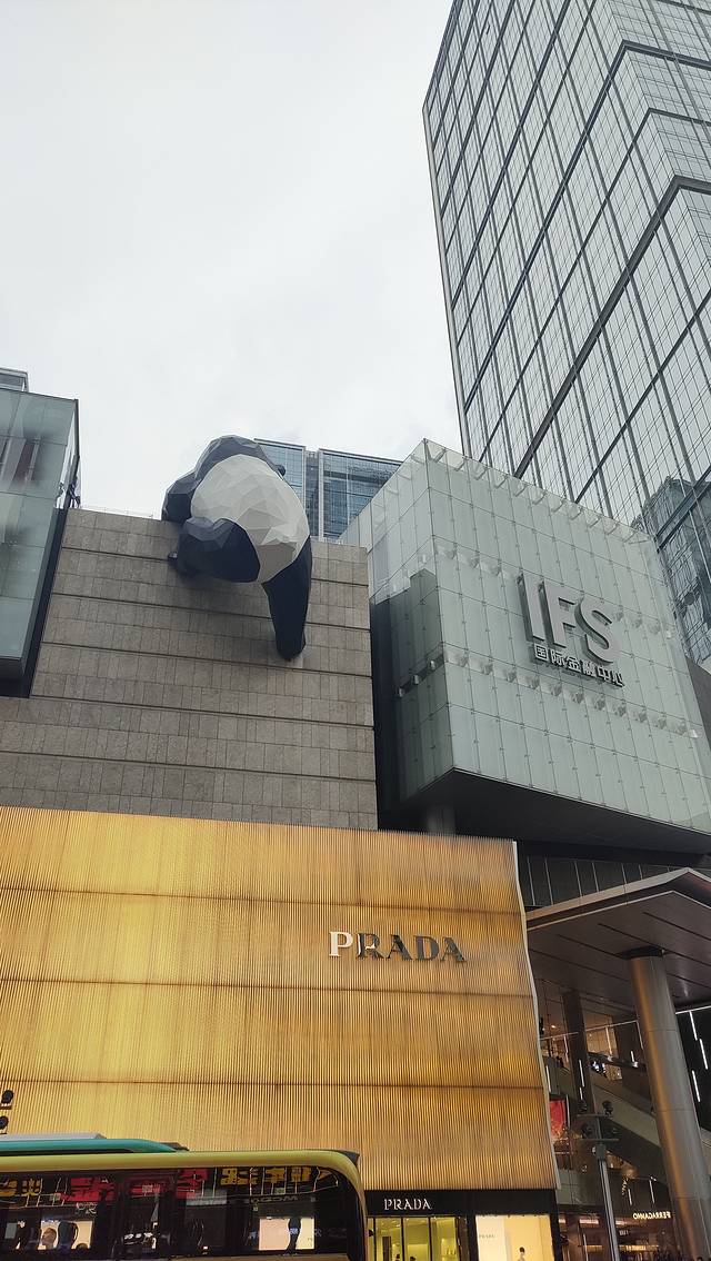 下午四点出门直接打卡春熙路标志性建筑IFS,看熊猫爬墙!天气很热,春熙路人特别多,乘电梯上7楼能看到熊猫正面。照相还去排队,大概二十分钟!