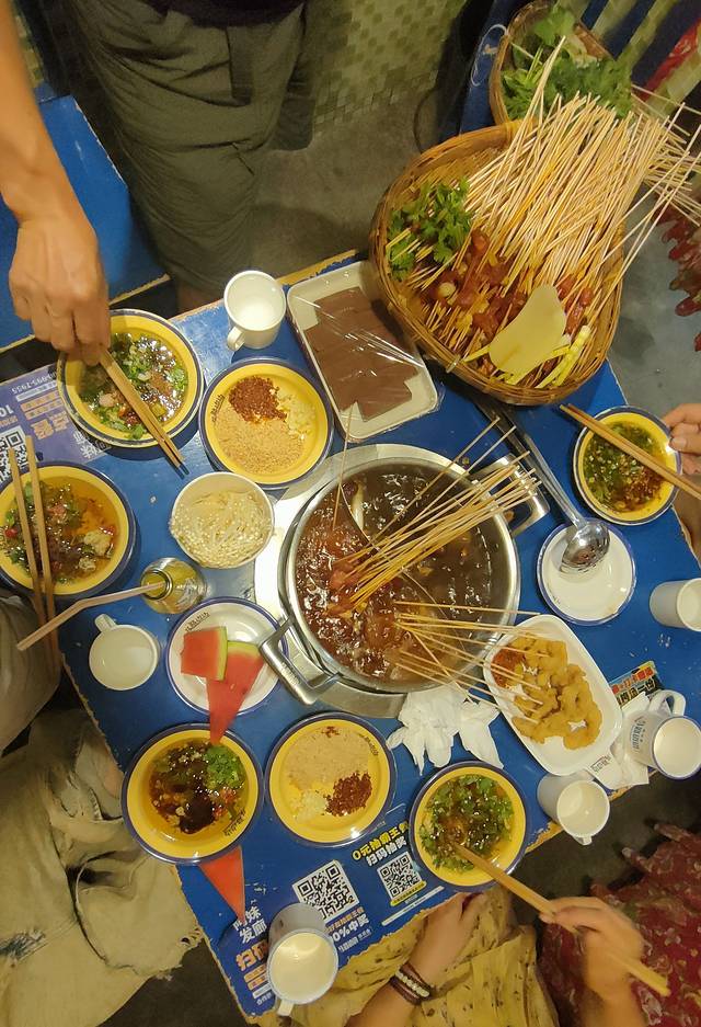 酒店附近马路边边串串,解决晚饭,鲜香麻辣!吃完回去休息!